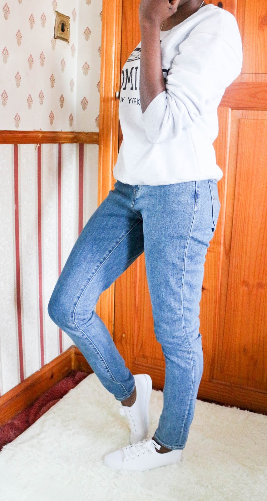 Here we go again, not so monochrome look for today’s outfit put together, I really love these white trainers from ASOS which some may feel is not very ideal. I feel it just brings the outfit together and helps me pull off my chilled-out outfit. I was going for the outfit baby wore in Dirty Dancing and I think I achieved it lol. Sometimes, the feel needs a little downtime from all the heels wearing 🙂 What do you think? Do you like my little ensemble?