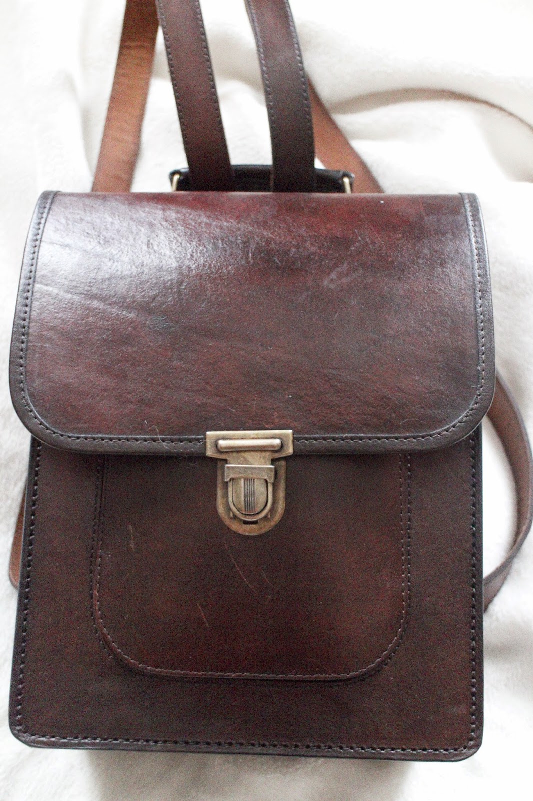 The Tito is a leather rucksack. It has one large main compartment, with an inner zip pocket and a small pouch at the front. This bag is big enough to hold my A5 size diary, Canon EOSM camera, small makeup bag, some extra bits and bobs and IPad.