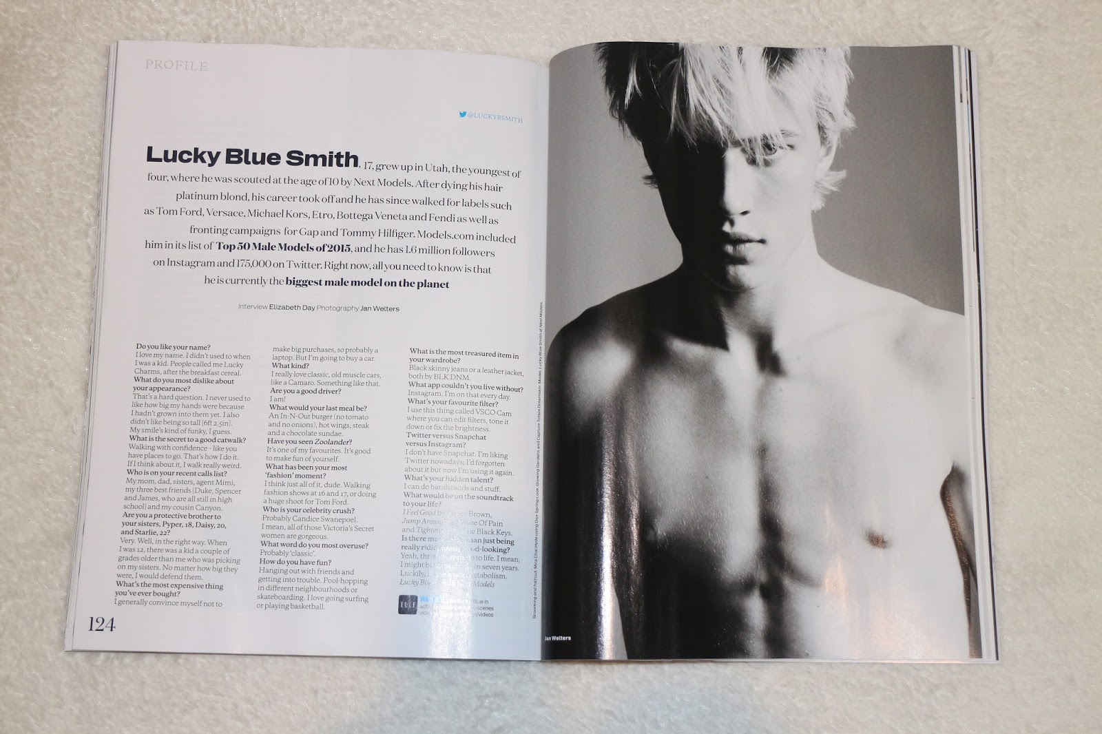 A snapshot of Lucky Blue Smith’s piece in the issue.