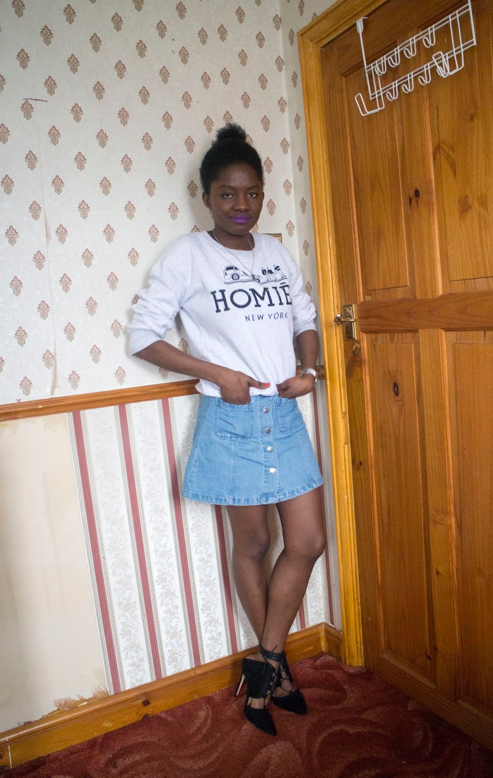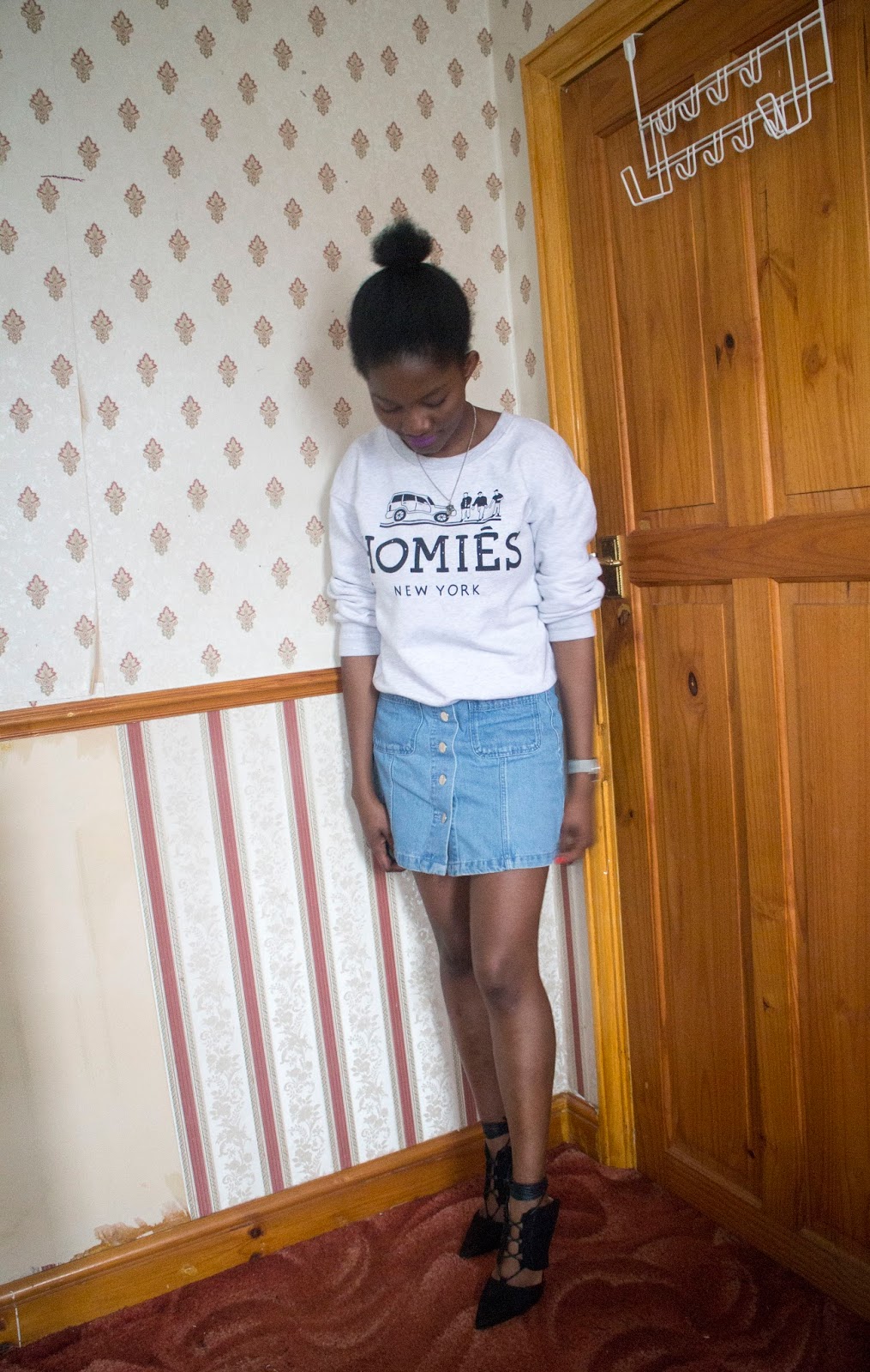 Today’s outfit of the day was me trying to style this denim skirt for a casual day out with friends. As you all know by now, because I am always cold I try to always dress up warm and in this British weather one must be prepared for the unexpected. For this outfit, it was warmer so I was brave to go out without any tights and I feel it looks much better without tights on. Don’t you think? I must admit though, I am really loving the whole denim look and I cannot wait to try out more light blue denim, maybe I could style some dungarees next (I have my eyes on many from a couple of stores)